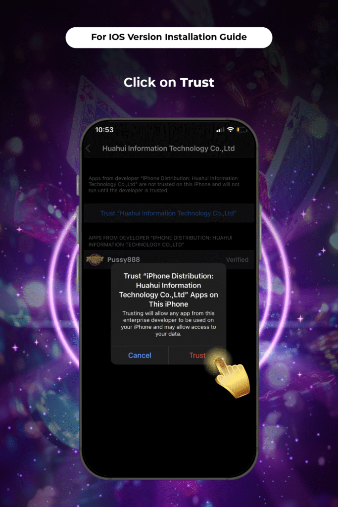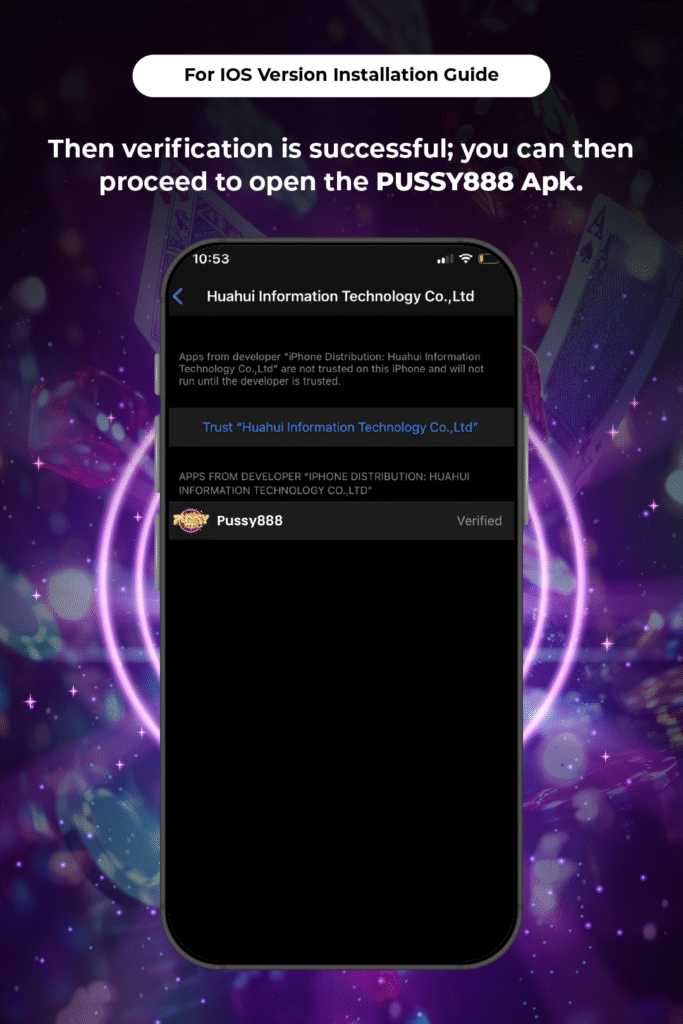 7. Then verification is successful, you can then proceed to open the Pussy888 APK on your IOS or Iphone
